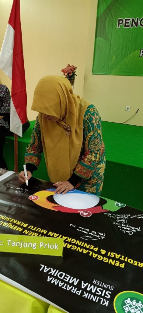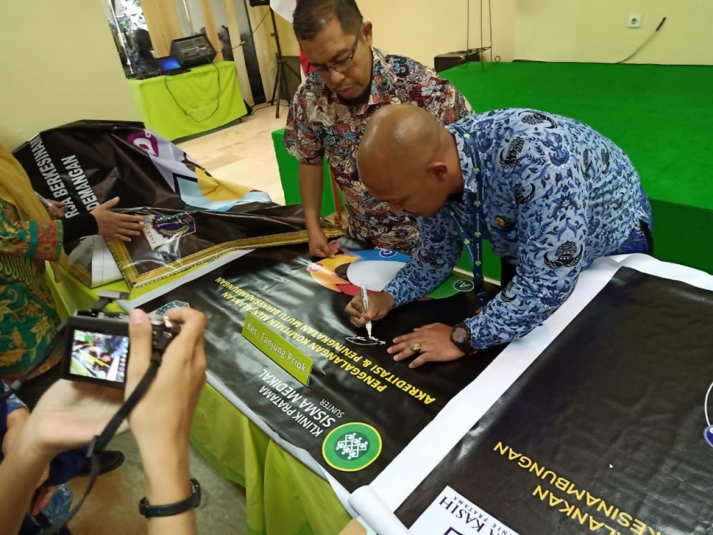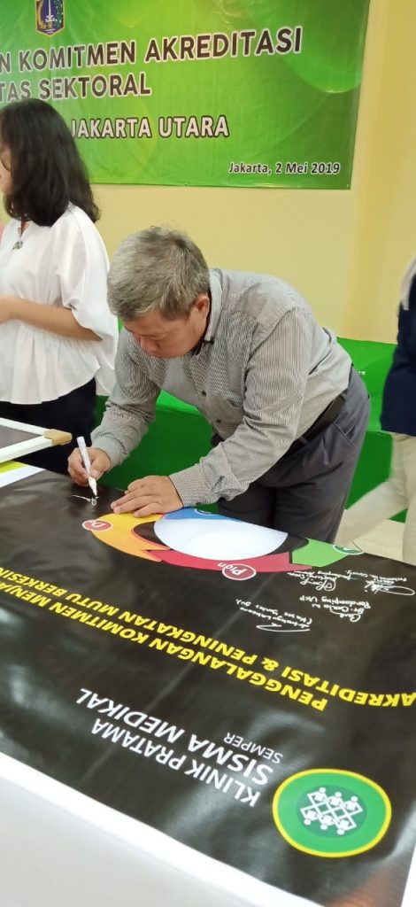 Penggalangan dan penanda tanganan banner Komitmen Menjalankan Akreditasi 10 Klinik Jakarta Utara oleh Lintas Sektoral Ka Sudinkes(Suku Dinas Kesehatan), Ka Puskesmas dan Kepala Kecamatan di Jakarta Utara yg selanjutnya akan di tandatangani oleh seluruh karyawan dan para dokter di klinik masing-masing.